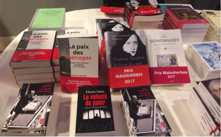 Le Prix Malesherbes décerné par l’Association française pour l’histoire de la Justice a été créé pour récompenser tous les deux ans, une œuvre marquante dans le domaine de l’histoire de la justice. A l’occasion du Salon du livre judiciaire 2017, organisé par l’Association Française pour l’Histoire de la Justice qui s’est tenu au sein Conseil supérieur du notariat le 2 décembre dernier, était remis le Prix Malesherbes. Son jury, présidé par Robert Badinter a couronné ex aequo les travaux de Claire Zalc, Dénaturalisés. Les retraits de nationalité sous Vichy, Paris, Seuil, 2016 et d’Anne-Emmanuelle Demartini, Violette Nozière, la fleur du mal. Une histoire des années 30, Paris, Champ Vallon, 2017. Une mention spéciale a également été attribuée à notre collègue, Victoria Vanneau, responsable du suivi scientifique à la Mission de recherche Droit et Justice pour son ouvrage, La Paix des ménages. Histoire des violences conjugales, 19e-21e siècle, Paris, Anamosa, 2016.