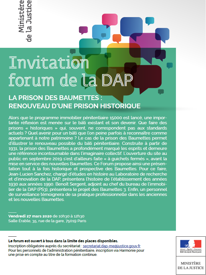 Le forum est ouvert à tous dans la limite des places disponibles. Inscription obligatoire auprès du secrétariat : secretariat.dap-me@justice.gouv.fr