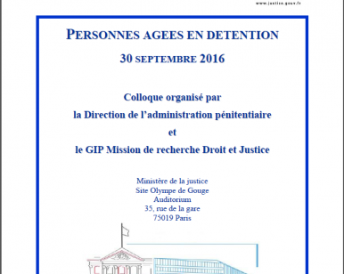 Colloque Personnes âgées en détention, le 30 septembre 2016 organisé par la DAP et la MRDJ